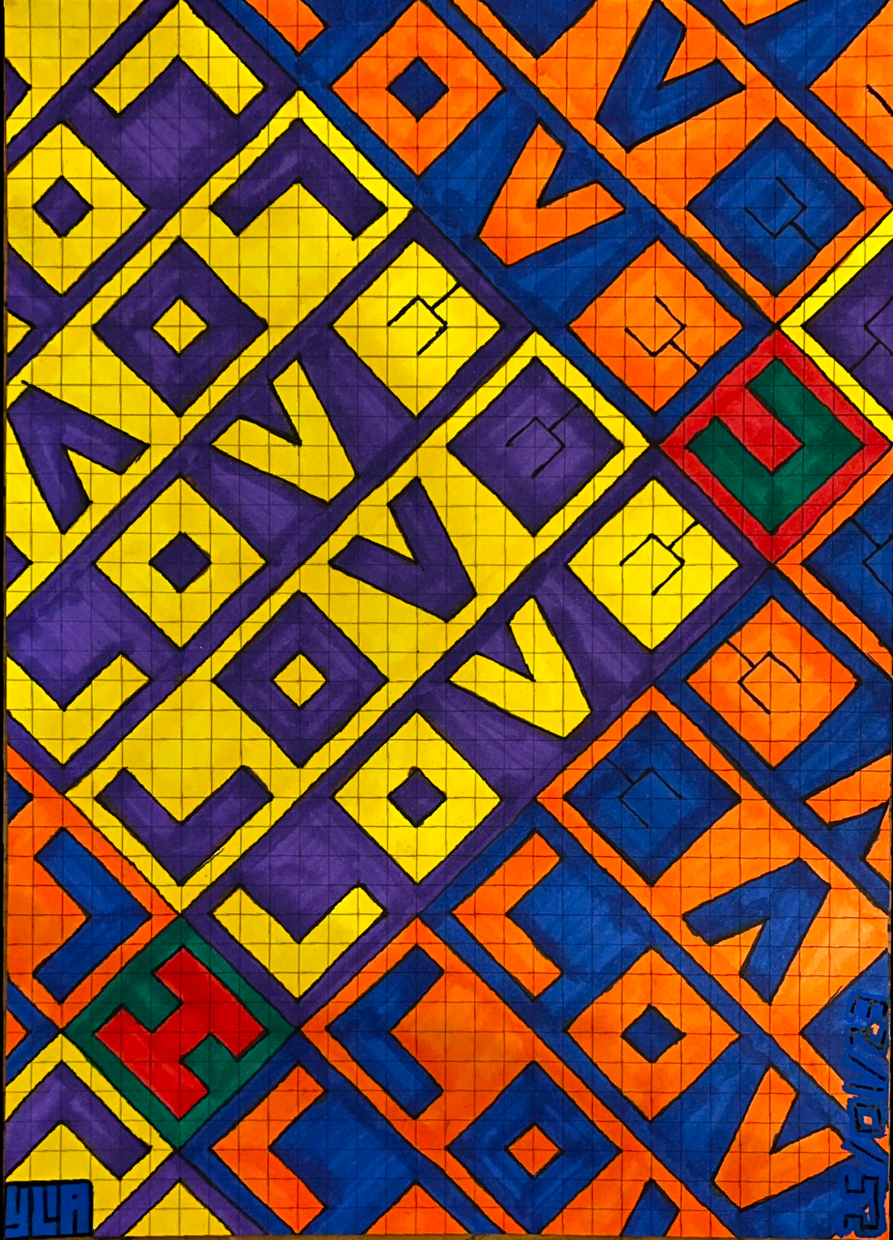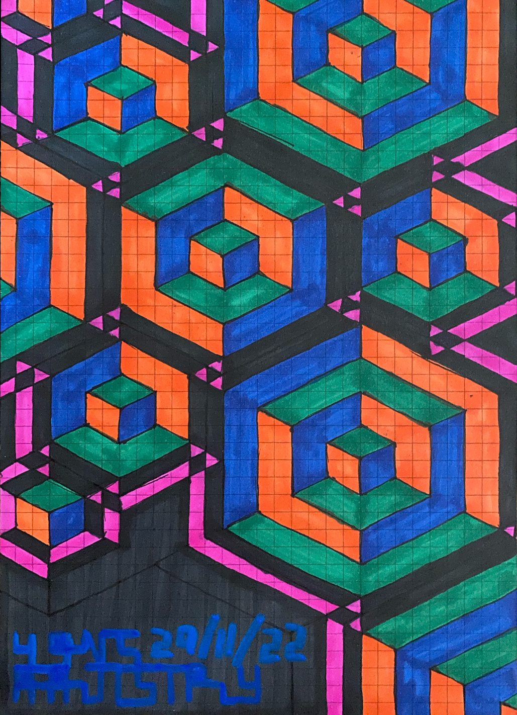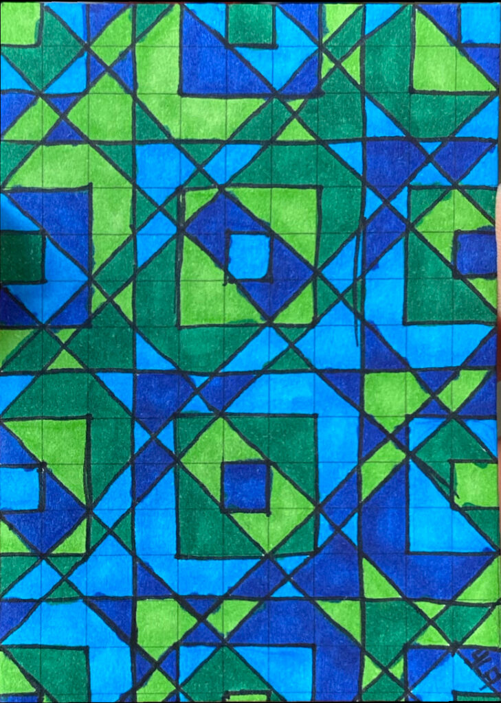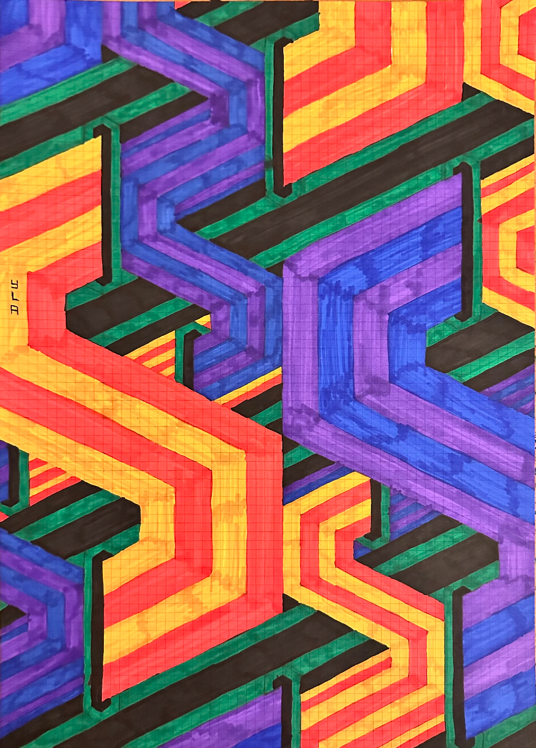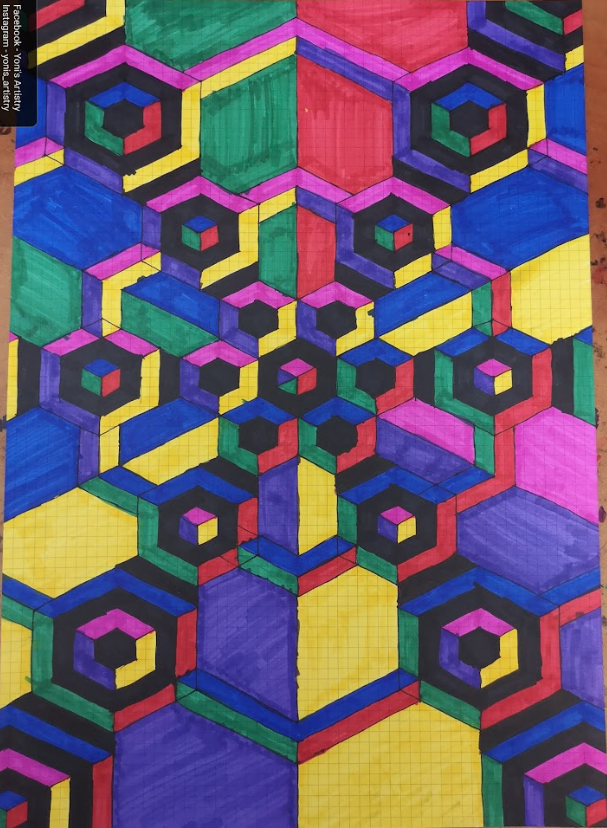 I continue to develop my multidisciplinary practice through YLA Art Magazine, Music theory and composition, my screen-printed clothing, and participation in a variety of events across Europe since 2022. I am currently pursuing a Mathematics major to discover new abstract ideas and apply them directly to the multi-dimensional structure of my paintings.